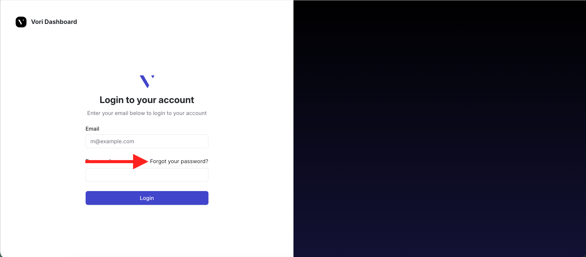 ✏️ Note: Vori does not store user passwords. If you do not receive the email, check your spam or junk folder.