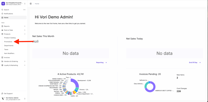 In Vori Back Office, select the