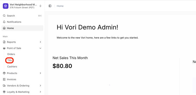 Navigating to Till Settings