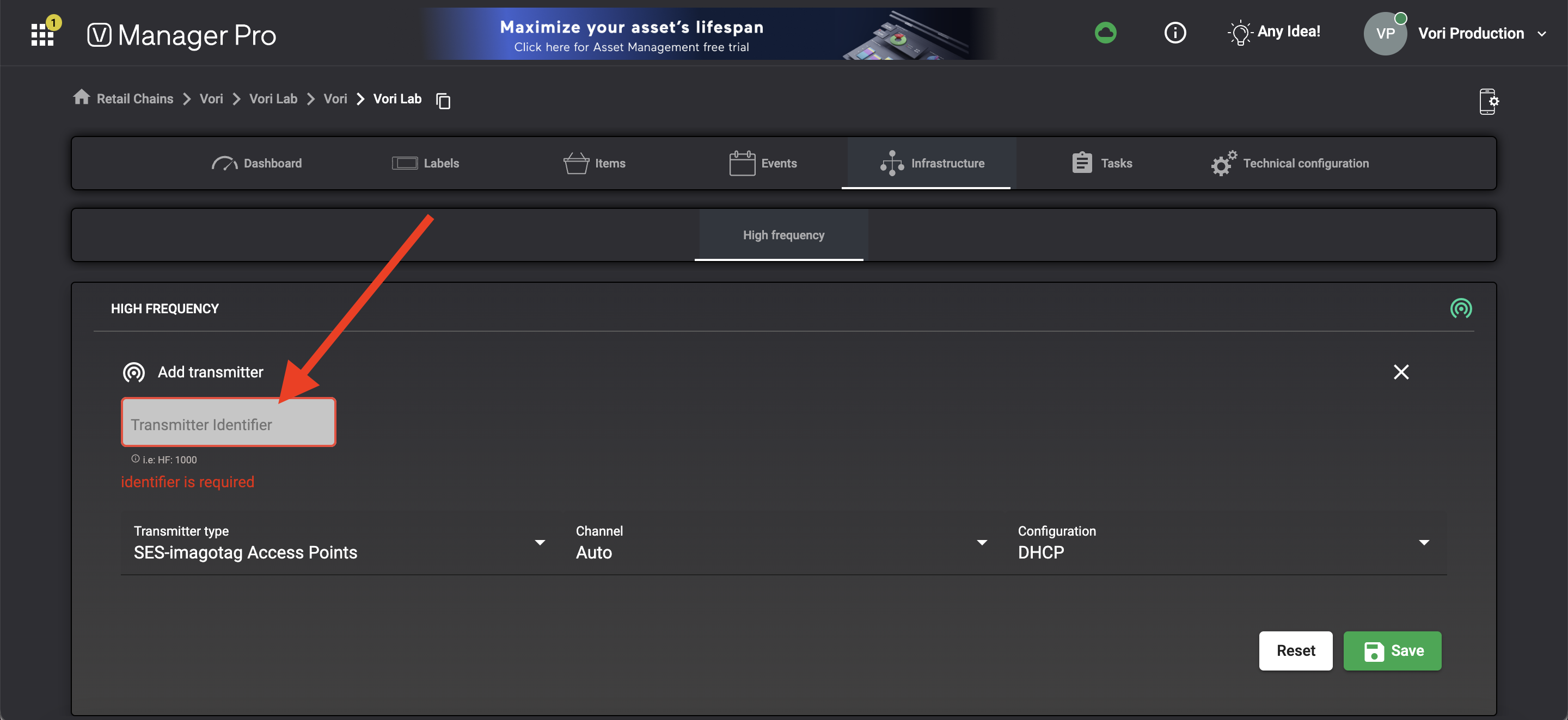 Under Transmitter ID, enter the AP-ID number found either on the access point's box or on the bottom of the access point.