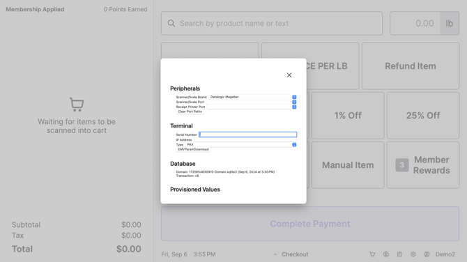 - The alphanumeric string ######## is unique to every POS lane (e.g., usbserial-AB1234). Select the one available in your list.