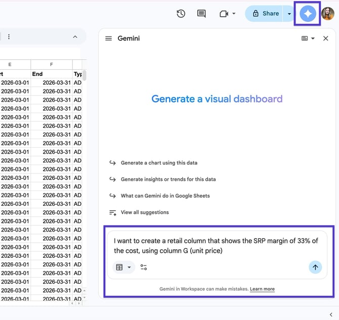 💡Tip: You can use AI features in Google Sheets (like "Help me organize") to help write these equations if you are targeting a different margin.