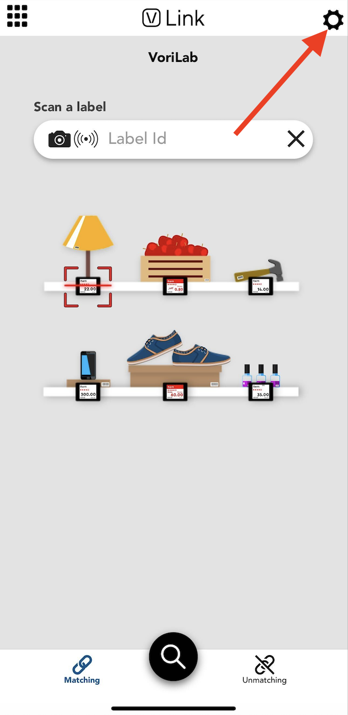 On the smartphone with Vusion Link already installed and logged in, open the Vusion Link app and tap the gear icon in the upper right corner of the screen.