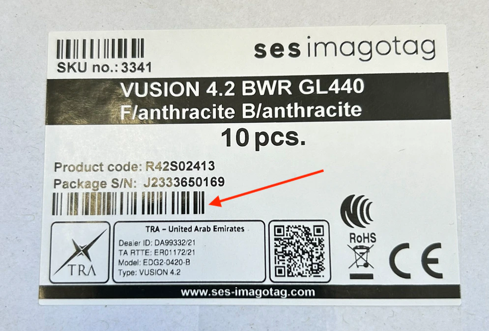 Use the camera to scan the barcode on the box of tags located below the Package S/N.