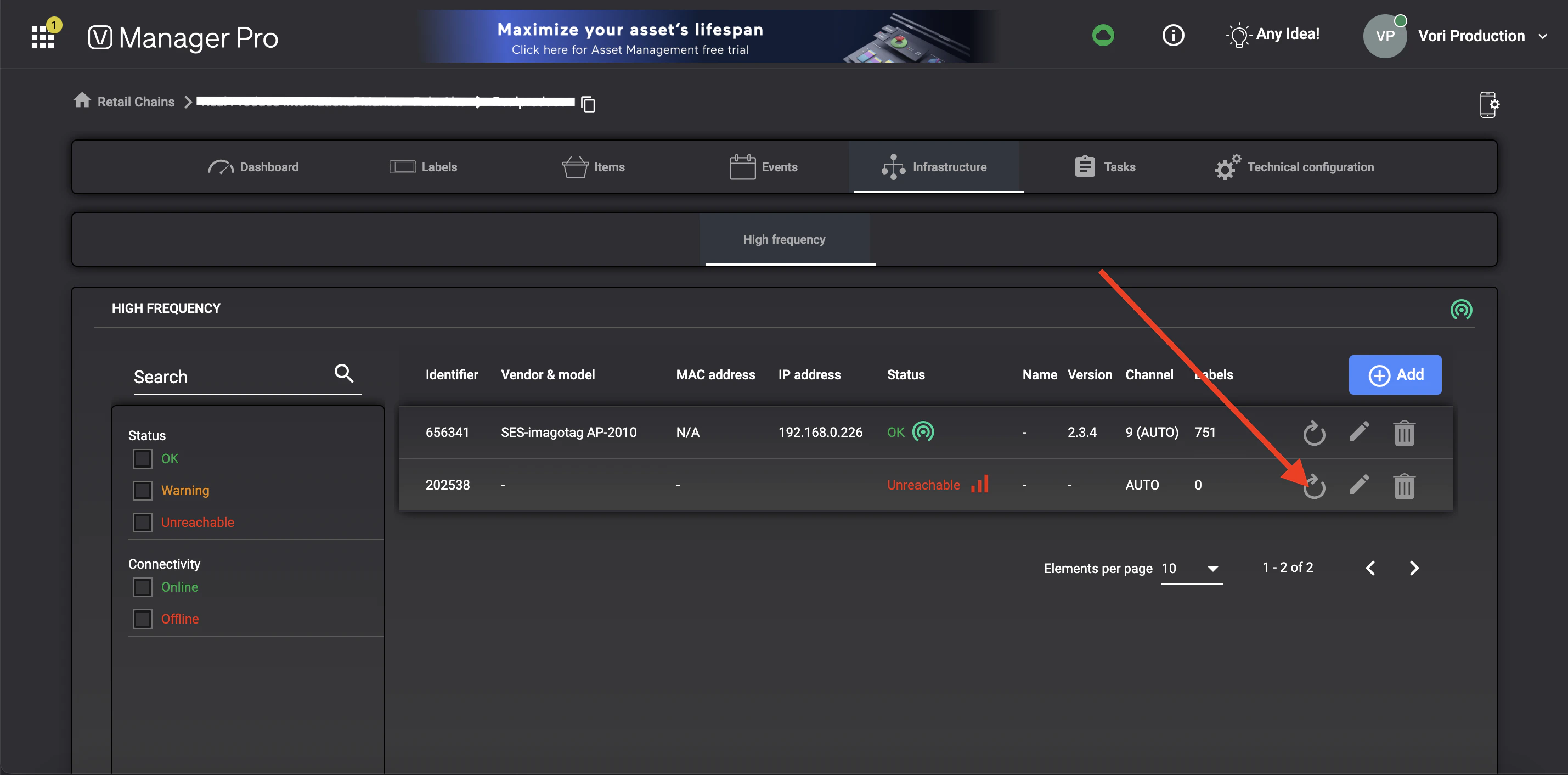 On the Infrastructure tab of Vusion Manager, select the