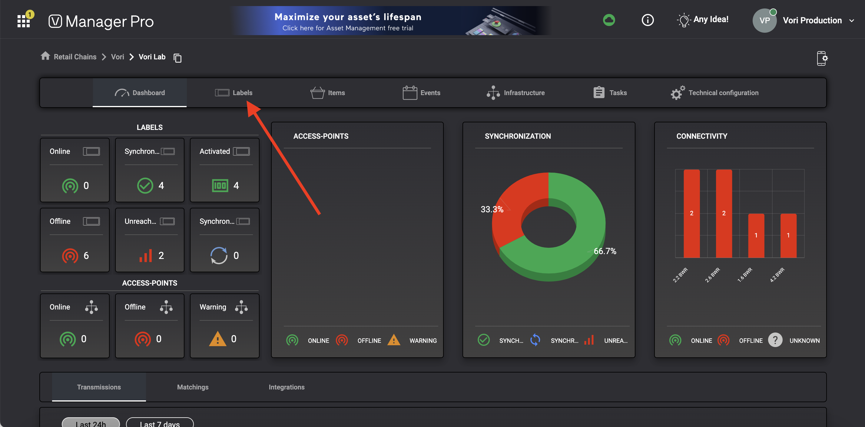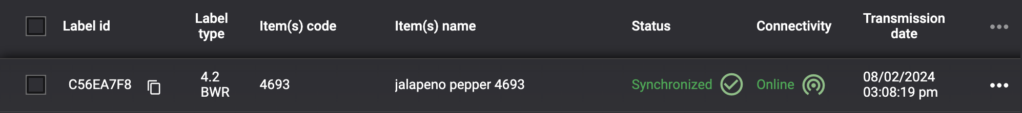 - Transmission date - Date & time of the latest sync attempt with the ESL to communicate changes made to the linked product