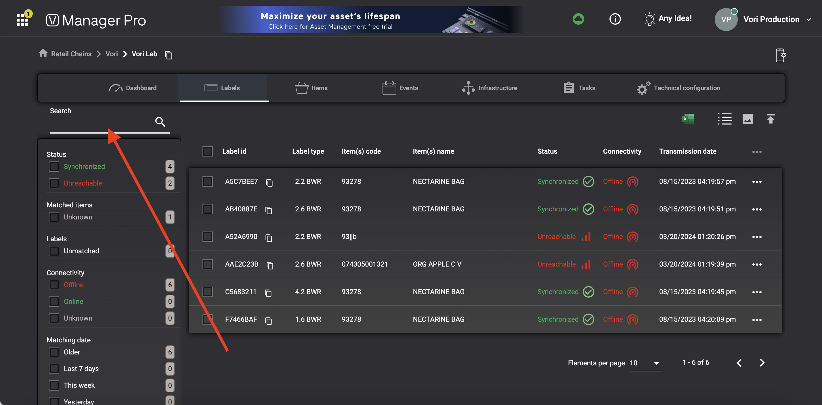 To troubleshoot an ESL not linking to a product, search for the individual ESL in Vusion Manager to check its registration and connectivity status, which helps identify the linking error’s cause. This guide shows how to look up a tag, view its network status, how to understand what that status means, and how to troubleshoot based on the status:Required Materials