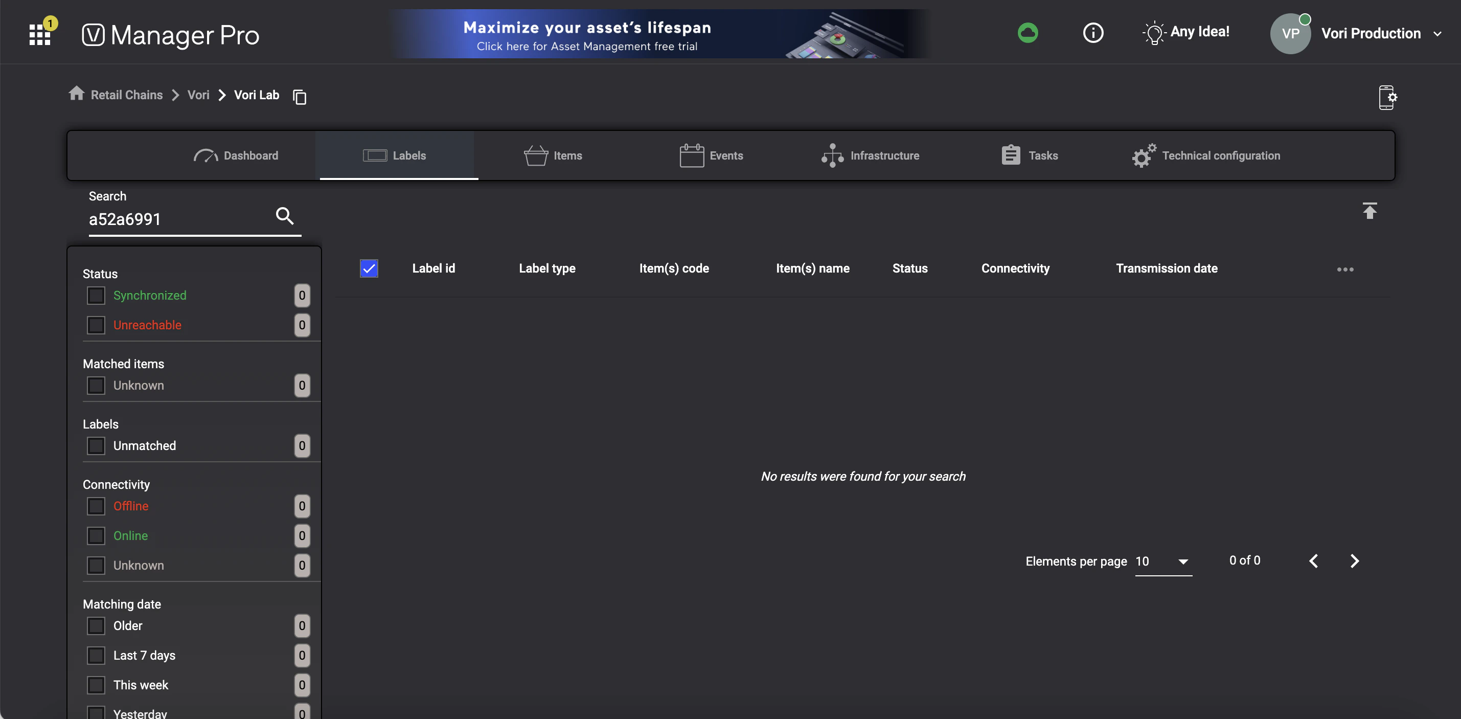 If the ESL ID is not listed in the Labels section, it has not been registered with the store’s account yet.