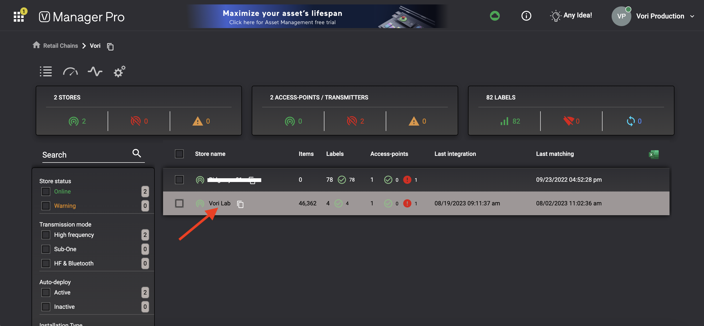 Select the individual store ID.
