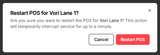- At the right end of the lane’s row, select Restart POS.