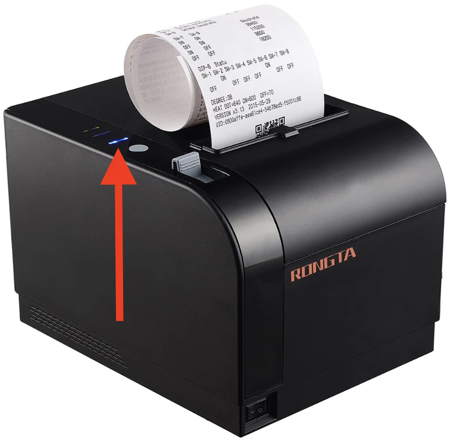 - Check if the status LED on the top left of the receipt printer is lit