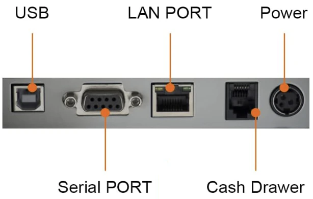 - On the back of the receipt printer, check that the communication cable is securely plugged into the Serial Port.
