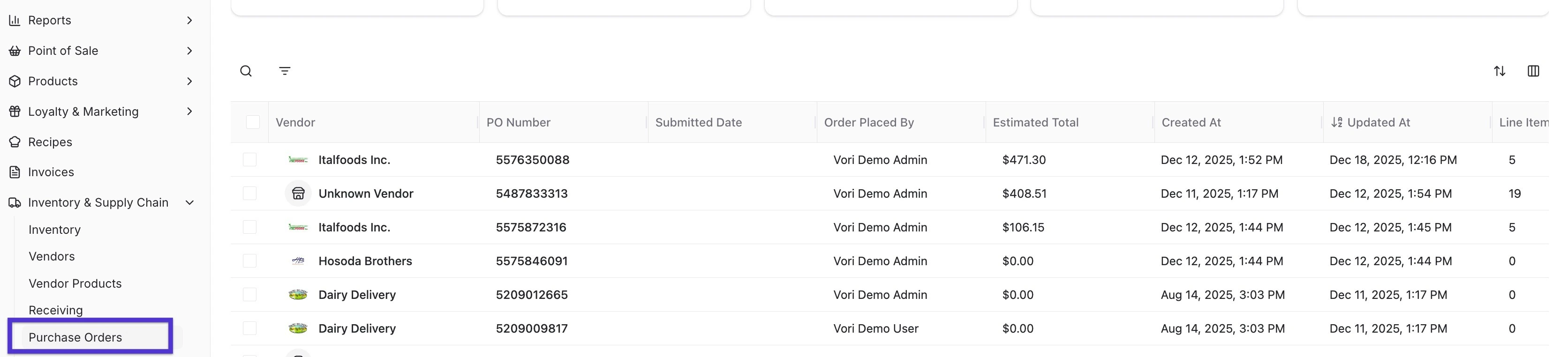 If you encounter technical issues on your handheld that prevent an order from being sent, you can submit the order directly from the Vori Back Office. This ensures your order reaches the vendor on time.How to Manually Submit a Purchase Order