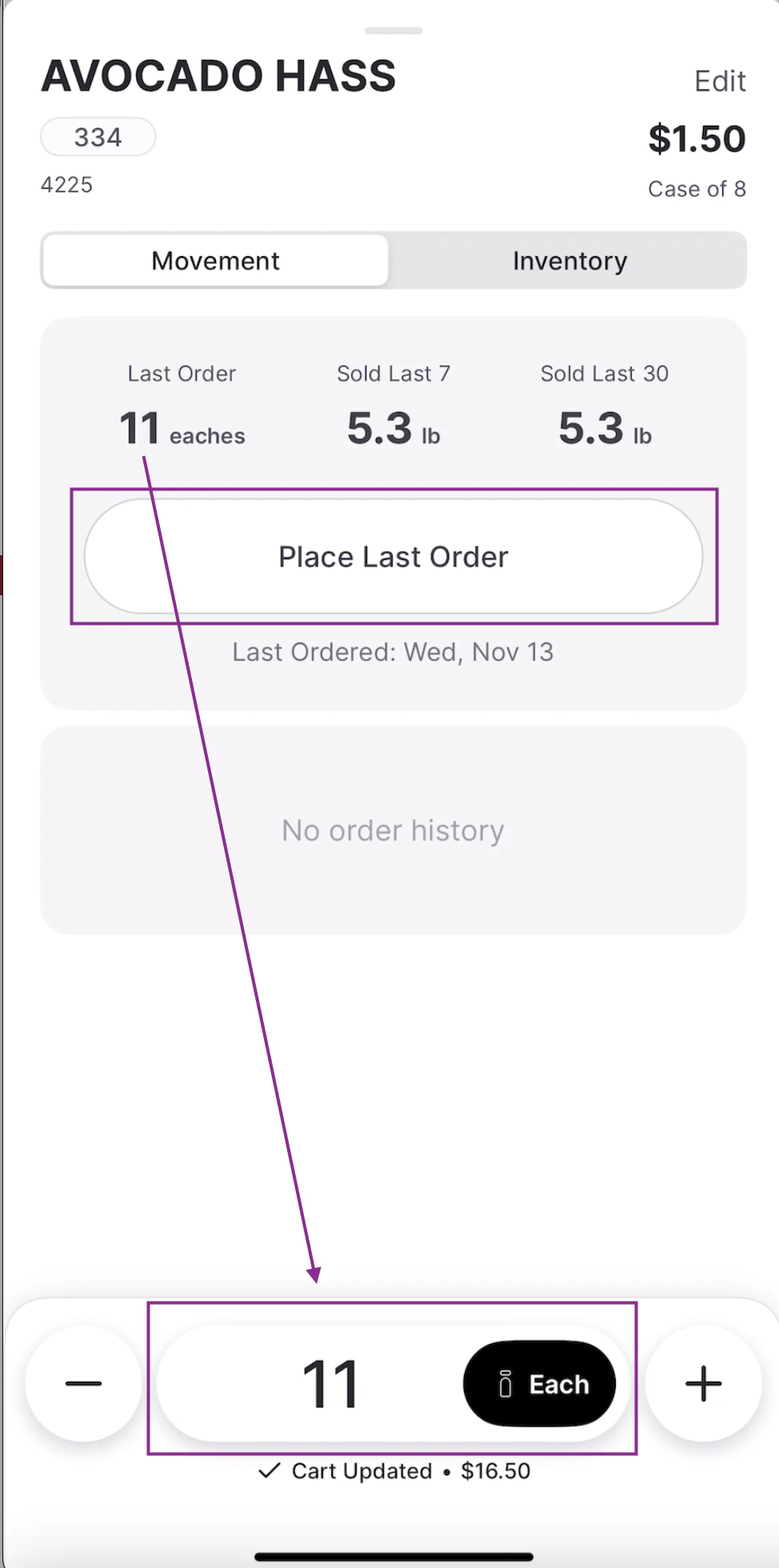 You can set how much you’d like to order using the quantity and unit controls.- Use the + / – buttons to adjust order quantity.