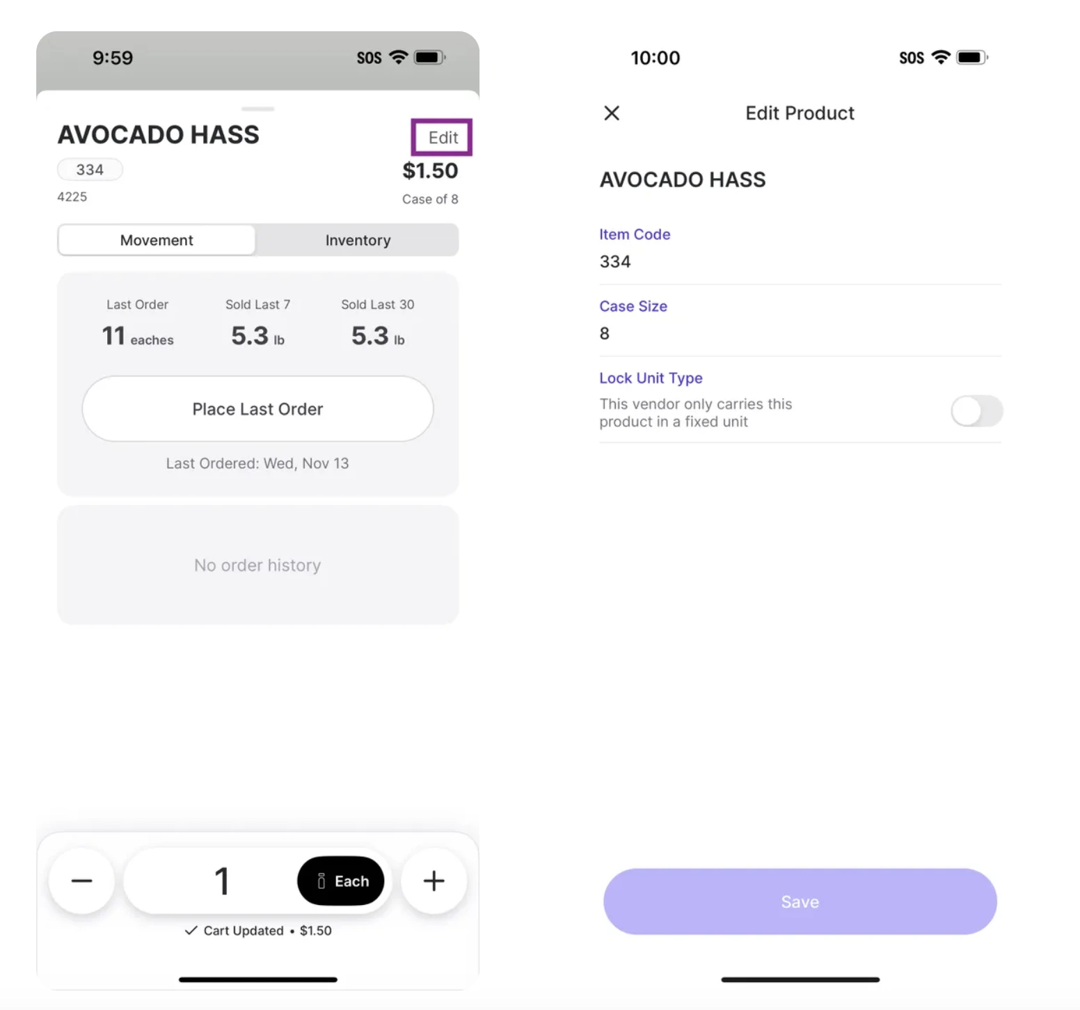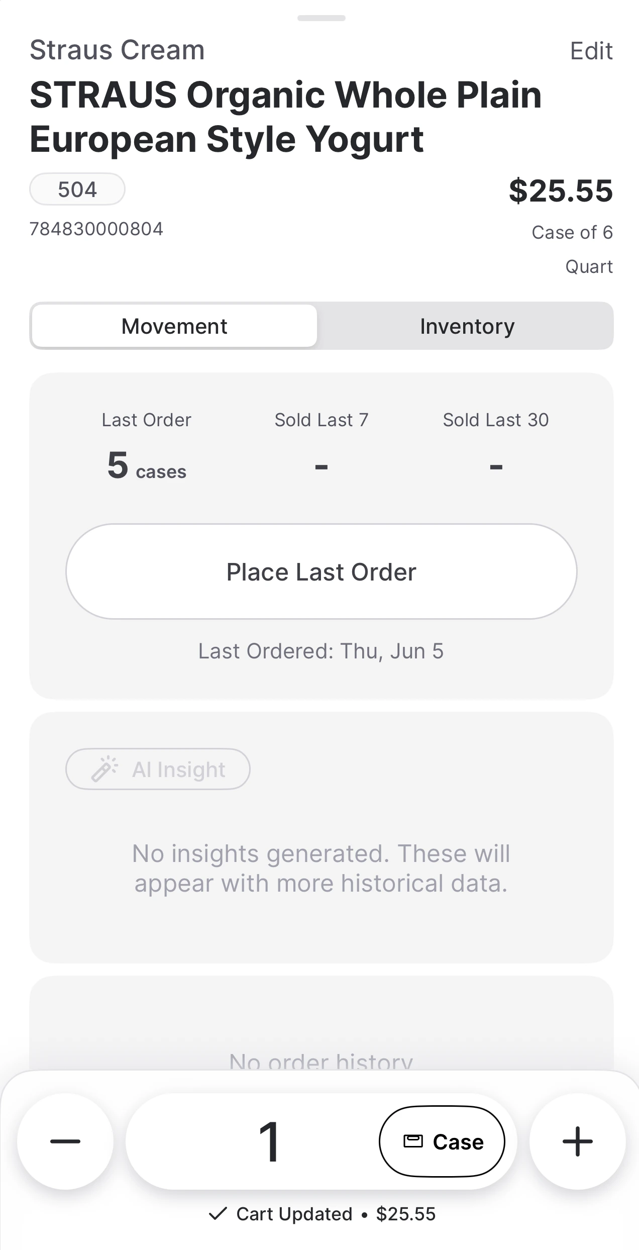Inventory: Need to make a quick correction to your inventory? Sometimes you spot a mistake mid-order, like realizing your shelf count is 12, not 10. No problem, just tap Update Inventory to update the number.