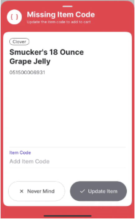 - If it’s missing an item code, you’ll see a Missing Item Code alert.
