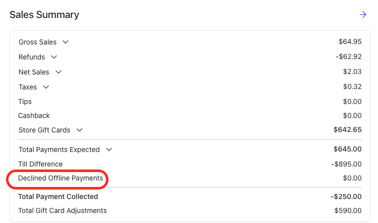 ✏️ Note: Any declined offline payments will appear in the End-of-Day Report.