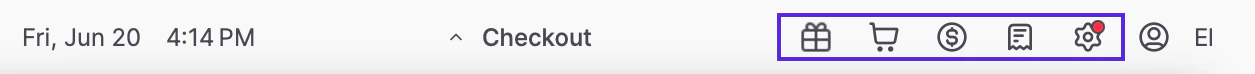 Access additional cashier tools by tapping the appropriate settings icons in the Toolbar.