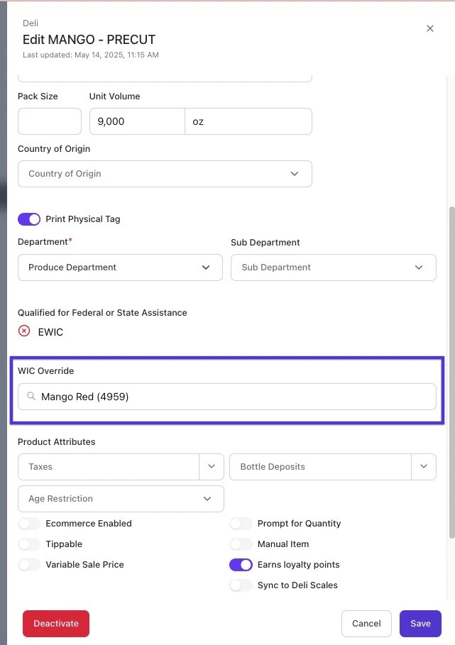 Mapping store-packed or pre-packed fresh produce to standard PLUs (Price Look-Up codes) ensures more items qualify for eWIC. This helps provide more fresh, nutritious options to families using WIC benefits. For example, a clamshell container of pre-cut mango may not be recognized by the state’s Approved Product List (APL), even though all fresh produce is eWIC-eligible. By mapping this product to the standard PLU for mango, it becomes available for eWIC transactions—supporting both product movement and healthy food access. PLU mapping is especially helpful for:- Pre-packed produce in clamshells or bags.