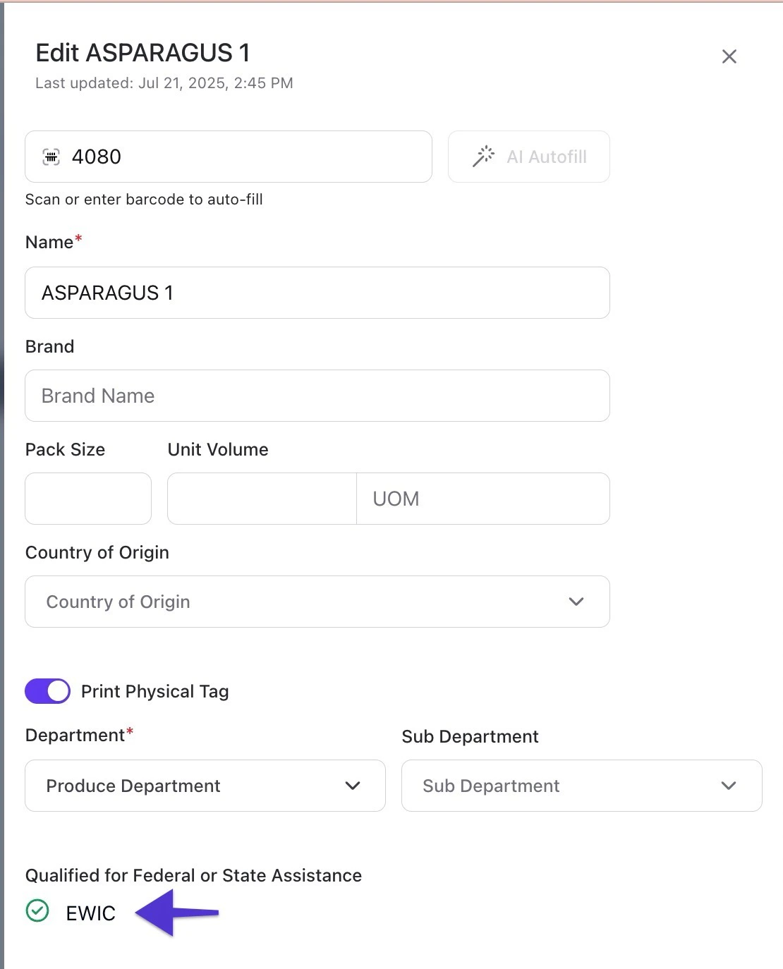 - Check for inactive items: Search your catalog for items that aren’t yet eligible and map them to the correct WIC PLU.