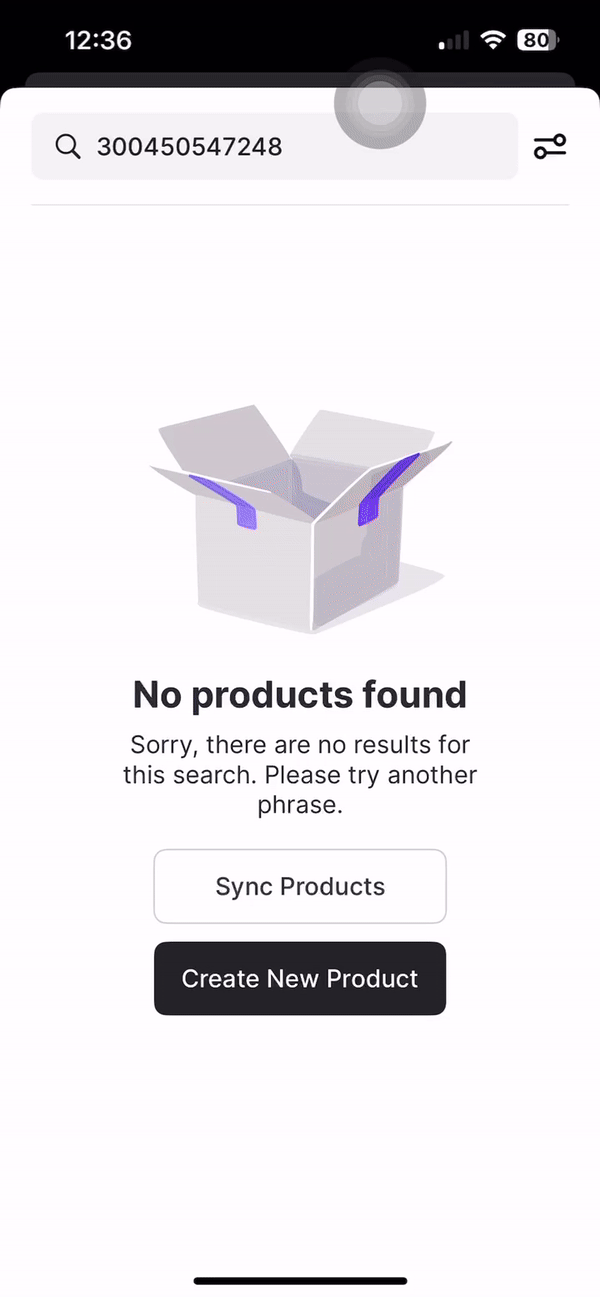 All product details can be managed directly within the VoriOS app, including bottle deposits, taxes, and departments. After logging into the VoriOS app, follow the instructions below to get started. Adding a product with a PLU or UPC-A barcode- Scan barcode or type in PLU in the Search bar.