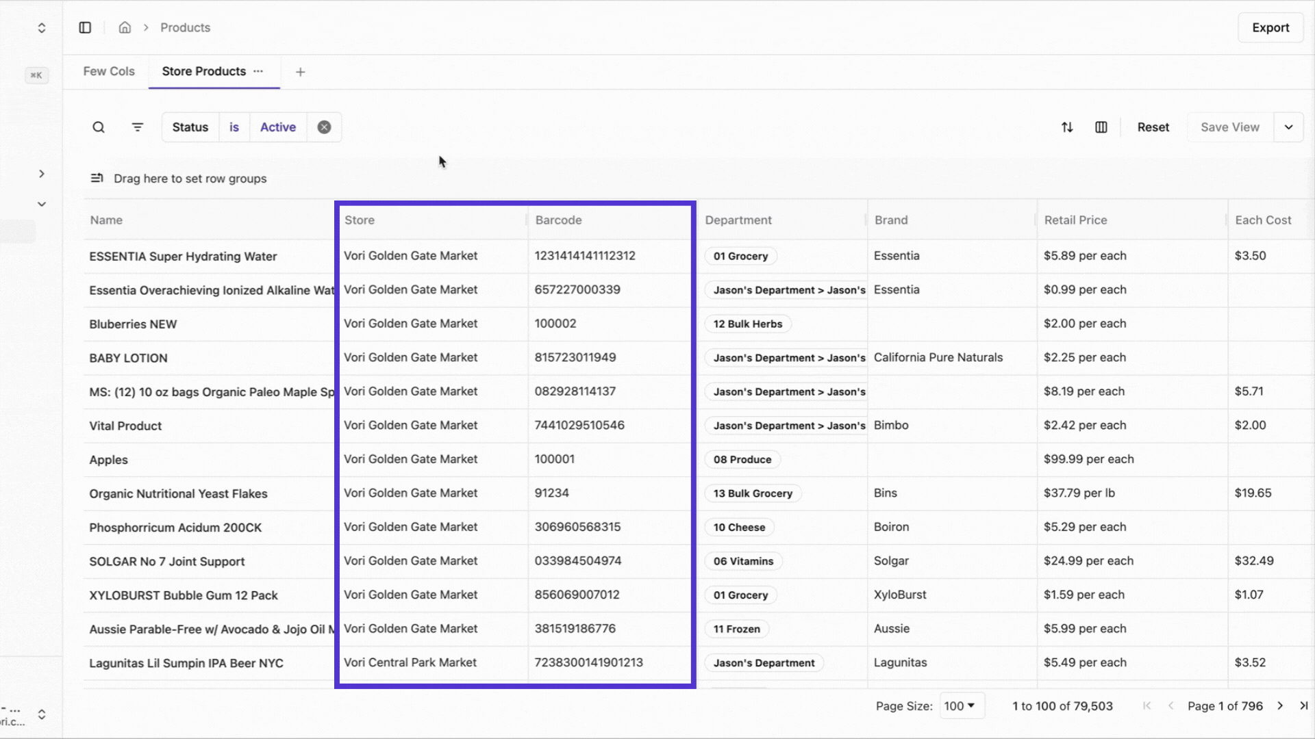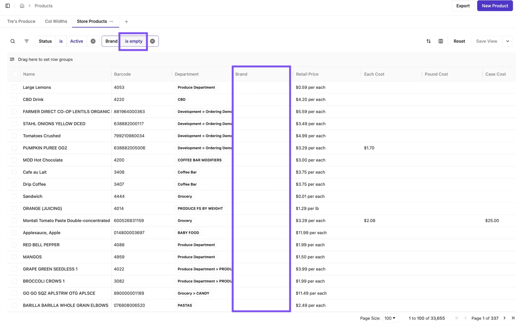 - More Filter Criteria Options: Use the search field or click into a specific column to filter by new criteria such as Case Cost, EBT Enabled, and Retail Price, as well as existing ones.