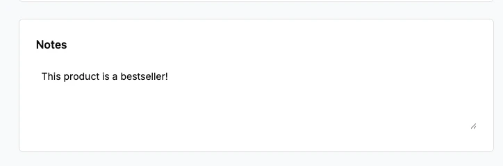 Include Notes: Add internal notes to help your team track important product-specific information.
