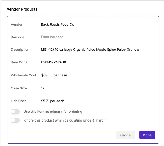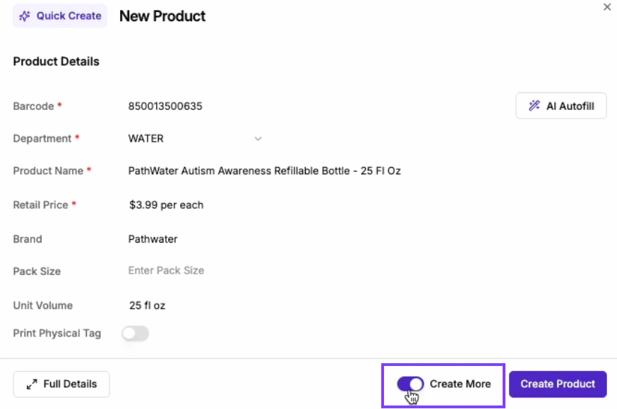 Previously, switching to Full Details would clear any information you had already entered, but now, all data is preserved. That means you can start with the Quick Create flow, and if you need to add more advanced product details (like pack size, attributes, vendor info, or inventory), you can switch to Full Details at any time without losing your work.