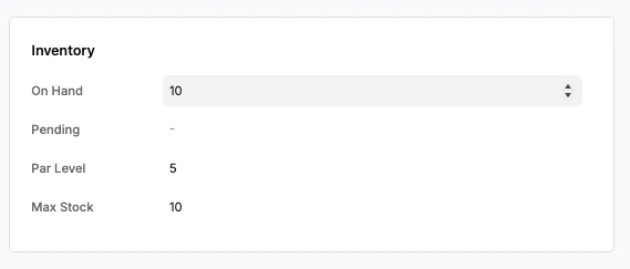 Update Inventory: Quickly adjust on-hand quantity, max stock, and other inventory-related details directly in the Inventory section.