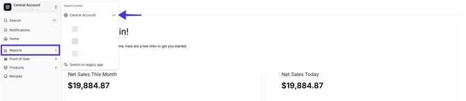 ✏️ Note: You can view all available reports for each store in Central View. For large reports, use filter options and scrolling to see data across all stores.