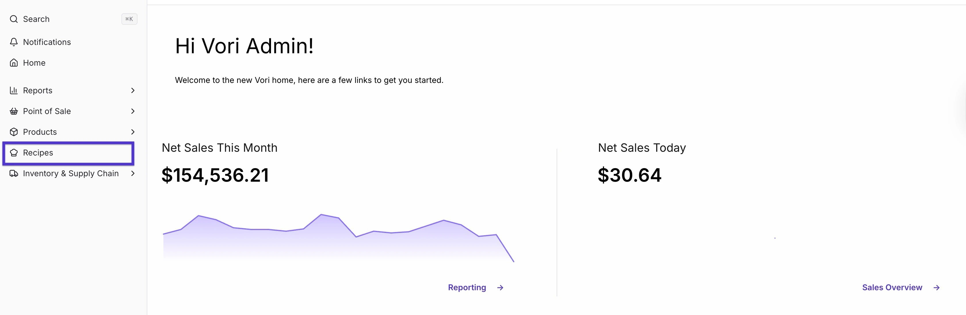 Click Recipes under the Apps section in the left-hand navigation panel.